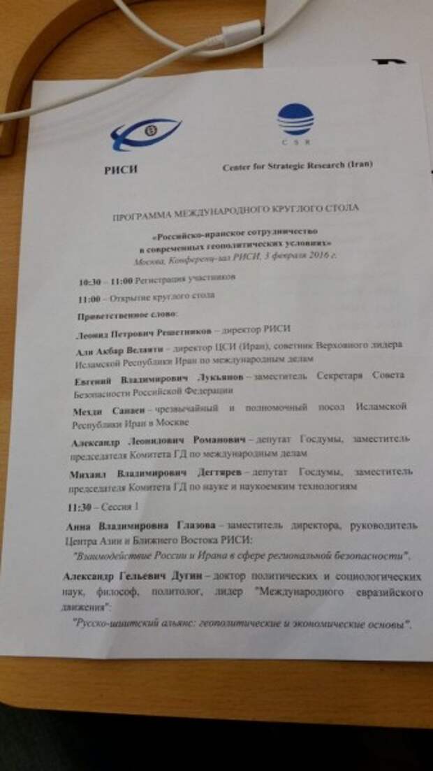 2. Иранцы настроены на сотрудничество. Господин Али Акбар Велаяти в своем спиче выделил более 10 направлений для оного, подчеркнув стратегическое преимущество в отношениях России и Ирана: у нас нет базовых разногласий. Директор РИСИ Л.П.Решетников от себя уже потом добавил: помимо этого имеется еще один фактор, явно сближающий наши страны - у вас есть базовые разногласия с США, и у нас с США то же самое. Отличная база для тесного партнерства))